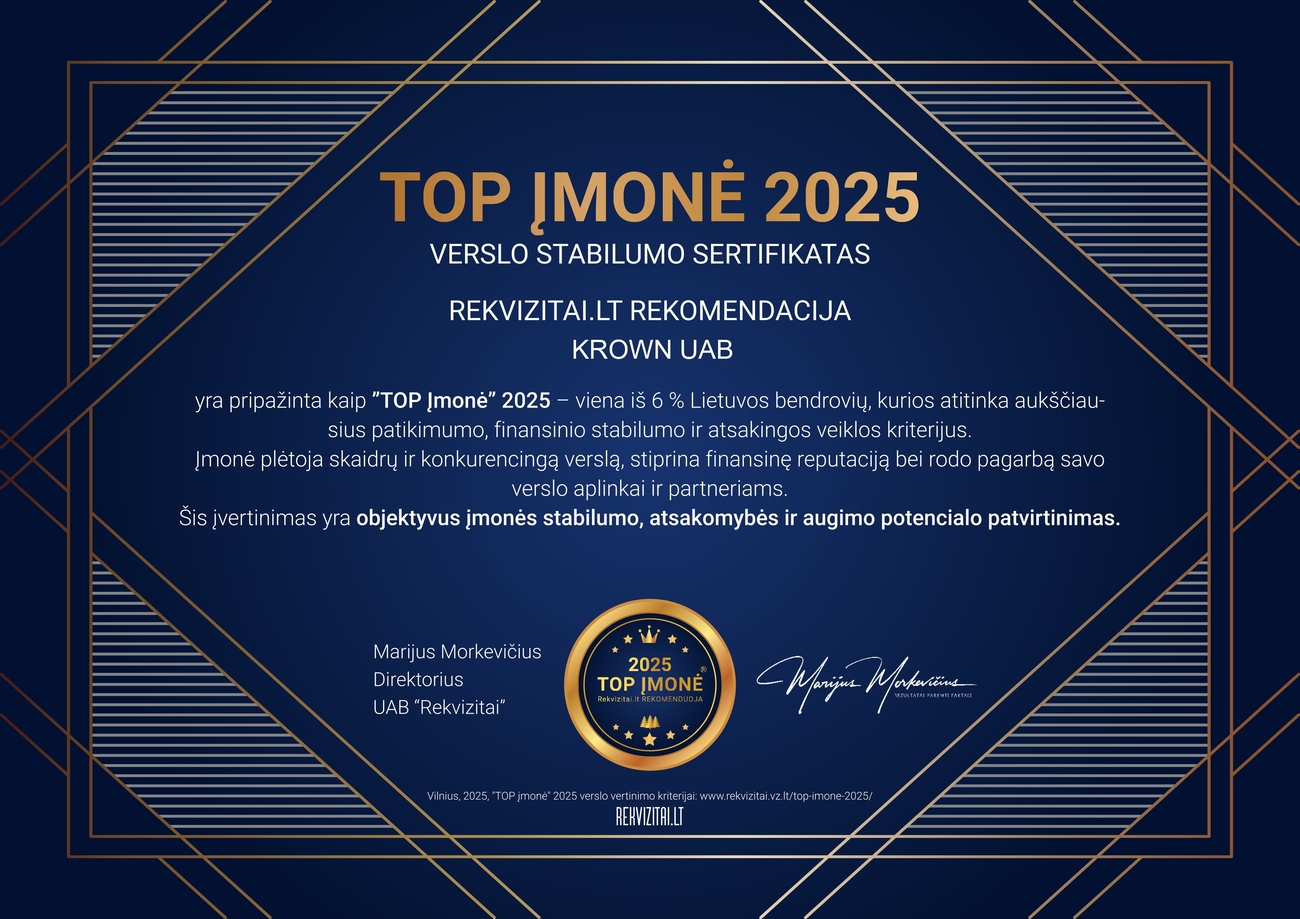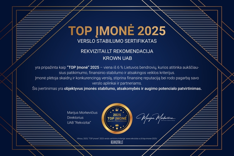 Krown, UAB Top įmonė 2020, 2022, 2023, 2024 ir 2025 metais.